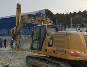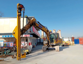 福建三明---龍工挖機改裝沖擊沖擊鉆38孔雙轉盤一次進桿6米