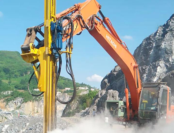 億山ES300挖改全液壓鑿巖機,廣泛適用于花崗巖、石灰石、大理石、火山石、青石、玄武巖等硬度較高的堅巖石的各種爆破前鉆孔作業(硬度F大于6級);可以借助挖機的操作靈活性用于錨桿鉆孔;也遠遠低于一體式鑿巖鉆機的采購價格。具操作簡易,設計人性化,感觀直接,實現挖掘機一機多用等特性。