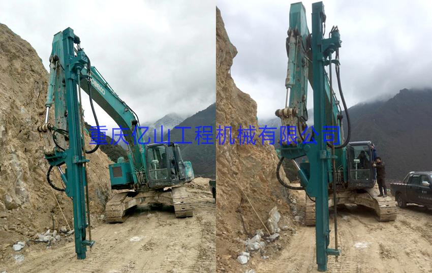 1、安裝拆卸方便。挖掘機小臂不用拆卸,不影響挖掘機自身功能,直接類似掛破碎錘一樣,管路系統都可以共用,真正實現一機五用并互換:挖土、破碎錘、切削鉆、鑿巖機、潛孔鉆。拆卸時間和換斗時差不多,約10-20分鐘。