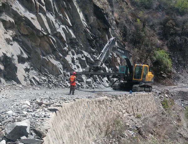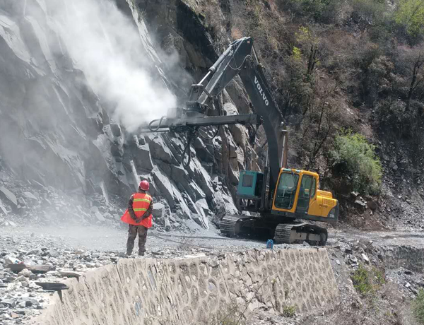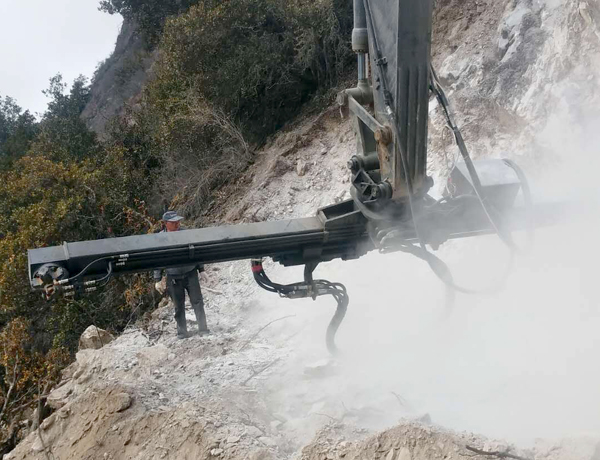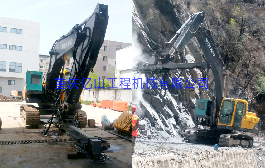 億山ES300挖改全液壓鑿巖機(jī),廣泛適用于花崗巖、石灰石、大理石、火山石、青石、玄武巖等硬度較高的堅(jiān)巖石的各種爆破前鉆孔作業(yè)(硬度F大于6級);可以借助挖機(jī)的操作靈活性用于錨桿鉆孔;也遠(yuǎn)遠(yuǎn)低于一體式鑿巖鉆機(jī)的采購價格。具操作簡易,設(shè)計(jì)人性化,感觀直接,實(shí)現(xiàn)挖掘機(jī)一機(jī)多用等特性。