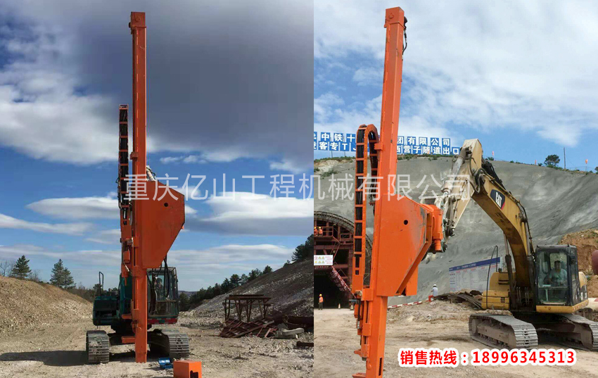 3、作業半徑擴大化 。因為挖掘機小臂不拆,它的作業半徑可以延長作業半徑2-3米,且仰角打孔、豎打孔都可以實現。