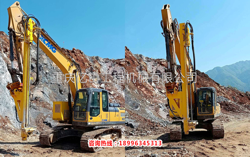 1、安裝拆卸方便。挖掘機小臂不用拆卸,不影響挖掘機自身功能,直接類似掛破碎錘一樣,管路系統都可以共用,真正實現一機五用并互換:挖土、破碎錘、切削鉆、鑿巖機、潛孔鉆。拆卸時間和換斗時差不多,約10-20分鐘。