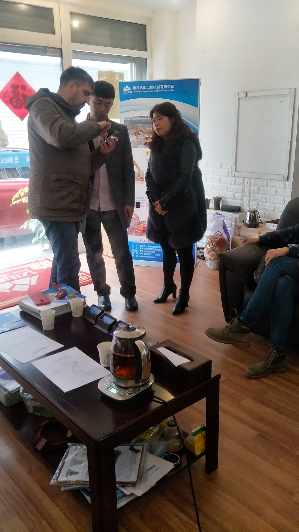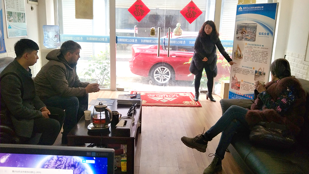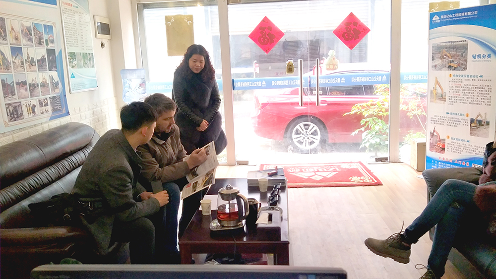 2019年12月12日,俄羅斯客戶來我公司考察挖機改全液壓鑿巖鉆機,我公司總經理秦玲熱情接待并詳細講解!