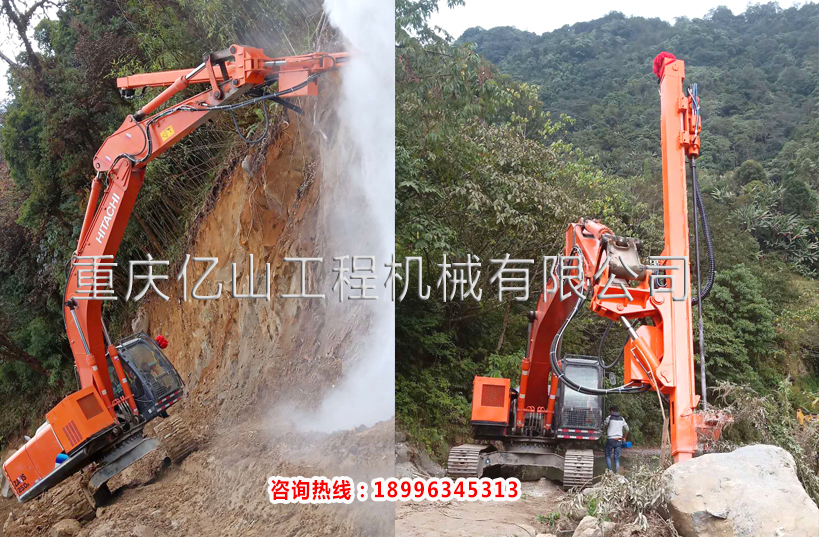 3、作業半徑擴大化 。因為挖掘機小臂不拆,它的作業半徑可以延長作業半徑2-3米,且仰角打孔、水平打孔、豎直打孔都可以實現。