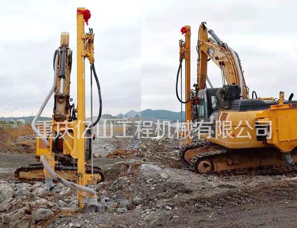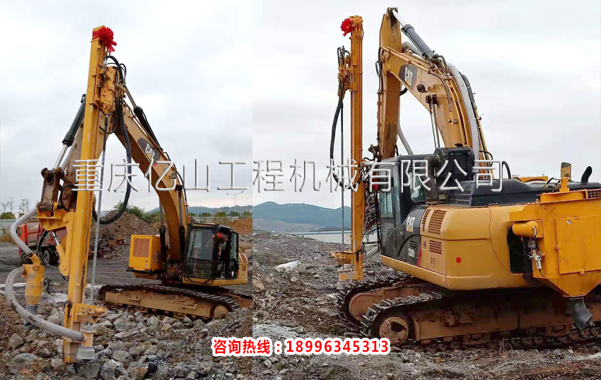 1、安裝拆卸方便。挖掘機小臂不用拆卸,不影響挖掘機自身功能,直接類似掛破碎錘一樣,管路系統都可以共用,真正實現一機五用并互換:挖土、破碎錘、切削鉆、鑿巖機、潛孔鉆。拆卸時間和換斗時差不多,約10-20分鐘。