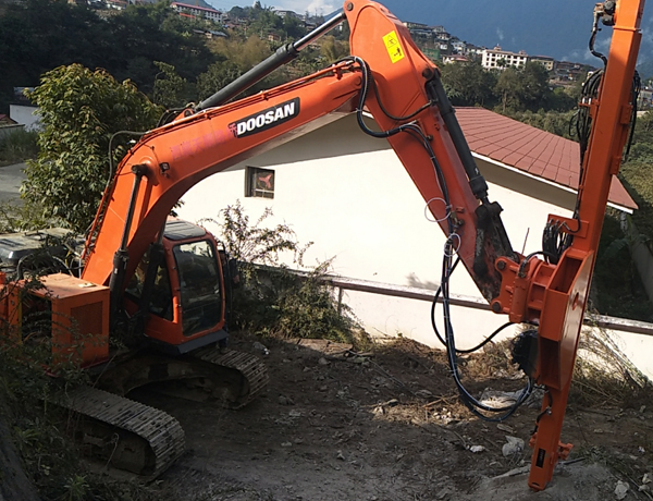 2、前后左右自由伸展,當挖掘機在工地不平坦的情況下, 挖機手可根據位置不同調整鉆桿角度,保持90°垂直鉆孔。
