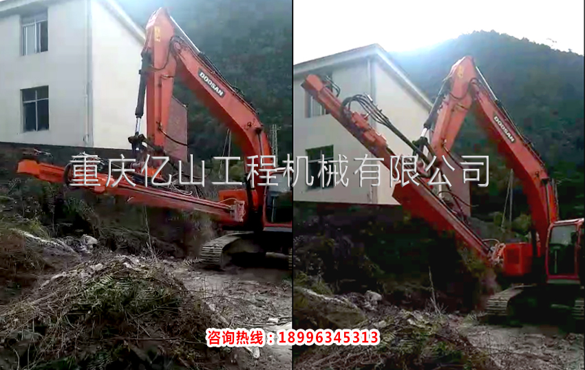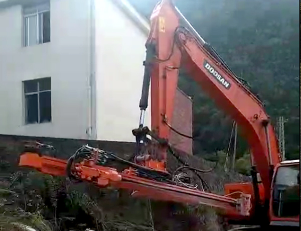 3、作業半徑擴大化 。因為挖掘機小臂不拆,它的作業半徑可以延長作業半徑2-3米,且仰角打孔、水平打孔、豎直打孔都可以實現。