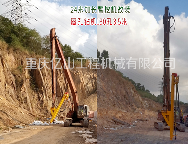 億山挖改潛孔鉆機各系列產品,廣泛適用于花崗巖、石灰石、大理石、火山石、青石、玄武巖、頁巖、砂巖、風化巖、泥巖等所有巖石的各種爆破前鉆孔作業;借助挖機的操作靈活性也可用于錨桿鉆孔以及孔徑較大的光伏孔;使用效率高于傳統的分體式潛孔鉆機。具操作簡易,設計人性化,感觀直接,實現挖掘機一機多用等特性。
