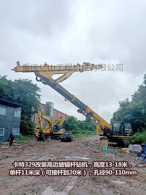卡特329改裝高邊坡錨桿鉆機,高度13-18米,單桿11米深(可接桿到20米),孔徑90-110mm