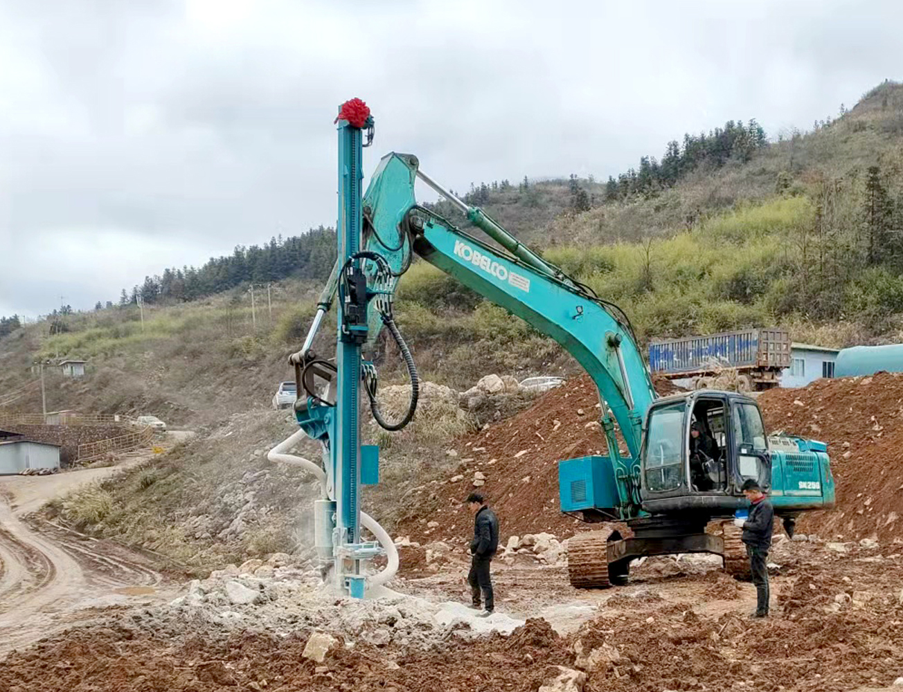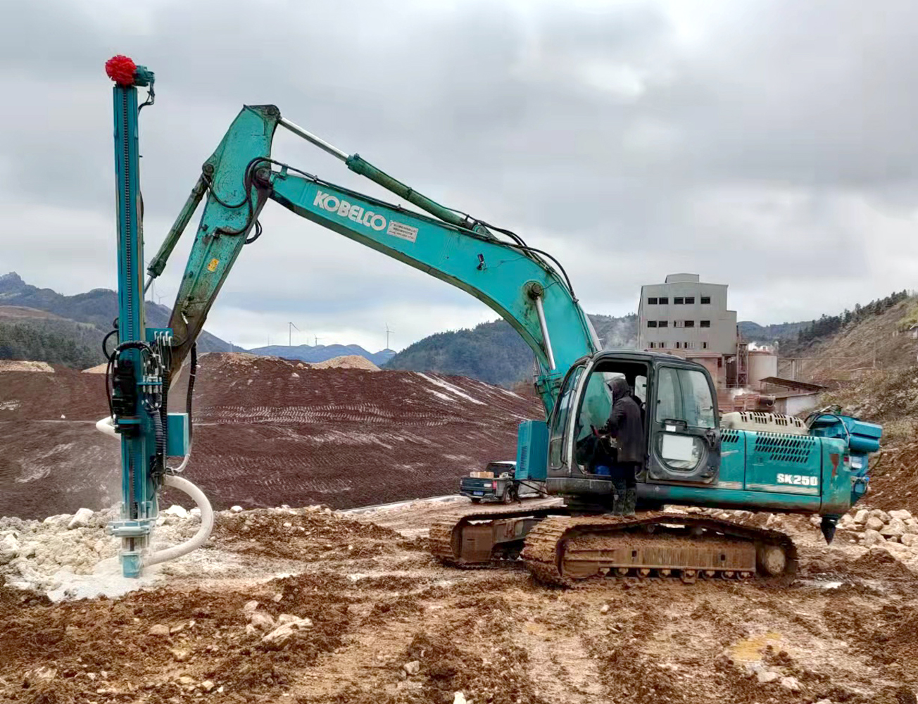 億山ES300挖改全液壓鑿巖機,廣泛適用于花崗巖、石灰石、大理石、火山石、青石、玄武巖等硬度較高的堅巖石的各種爆破前鉆孔作業(yè)(硬度F大于6級);可以借助挖機的操作靈活性用于錨桿鉆孔;也遠遠低于一體式鑿巖鉆機的采購價格。具操作簡易,設(shè)計人性化,感觀直接,實現(xiàn)挖掘機一機多用等特性。