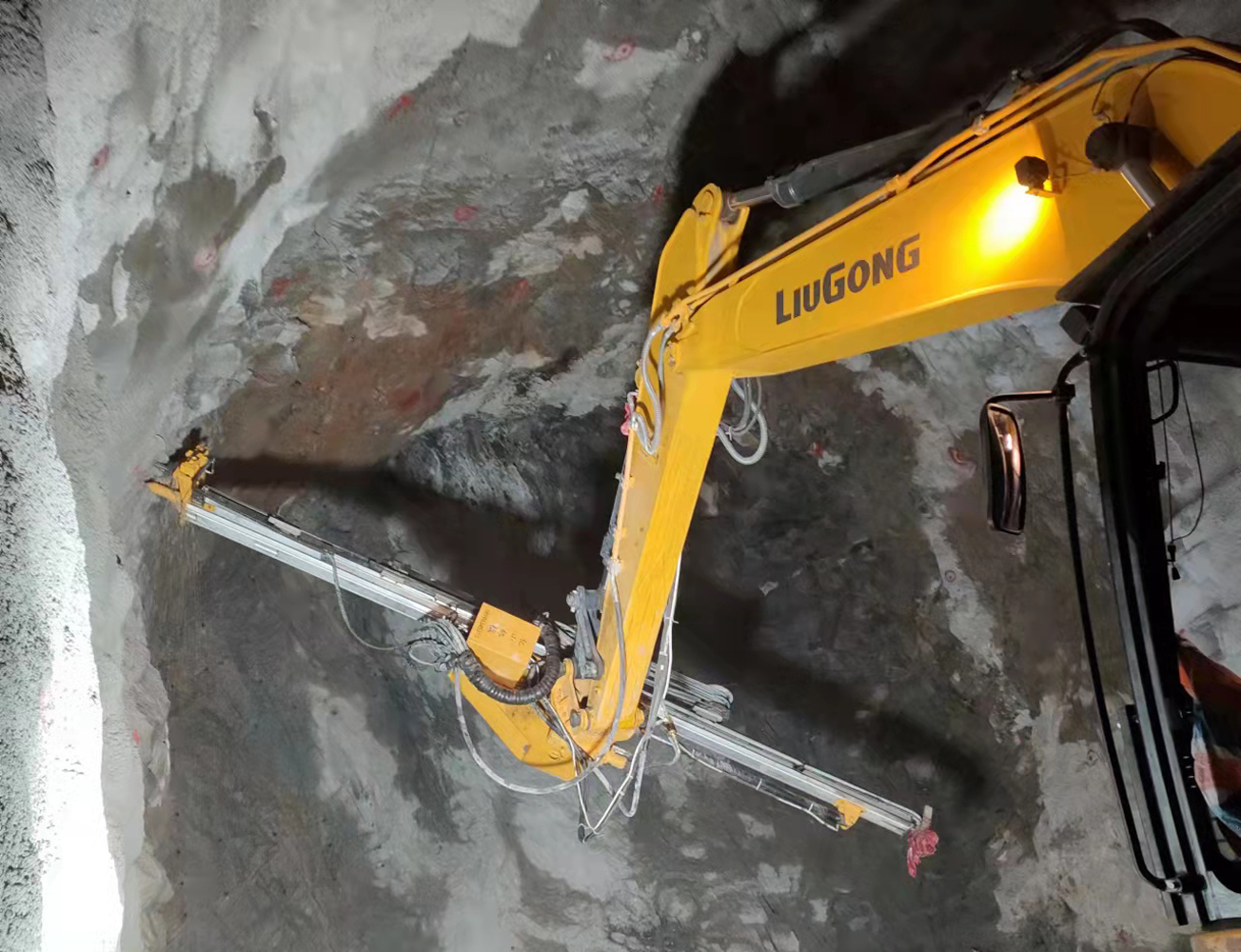 億山ES300挖改全液壓鑿巖機,廣泛適用于花崗巖、石灰石、大理石、火山石、青石、玄武巖等硬度較高的堅巖石的各種爆破前鉆孔作業(硬度F大于6級);可以借助挖機的操作靈活性用于錨桿鉆孔;也遠遠低于一體式鑿巖鉆機的采購價格。具操作簡易,設計人性化,感觀直接,實現挖掘機一機多用等特性。