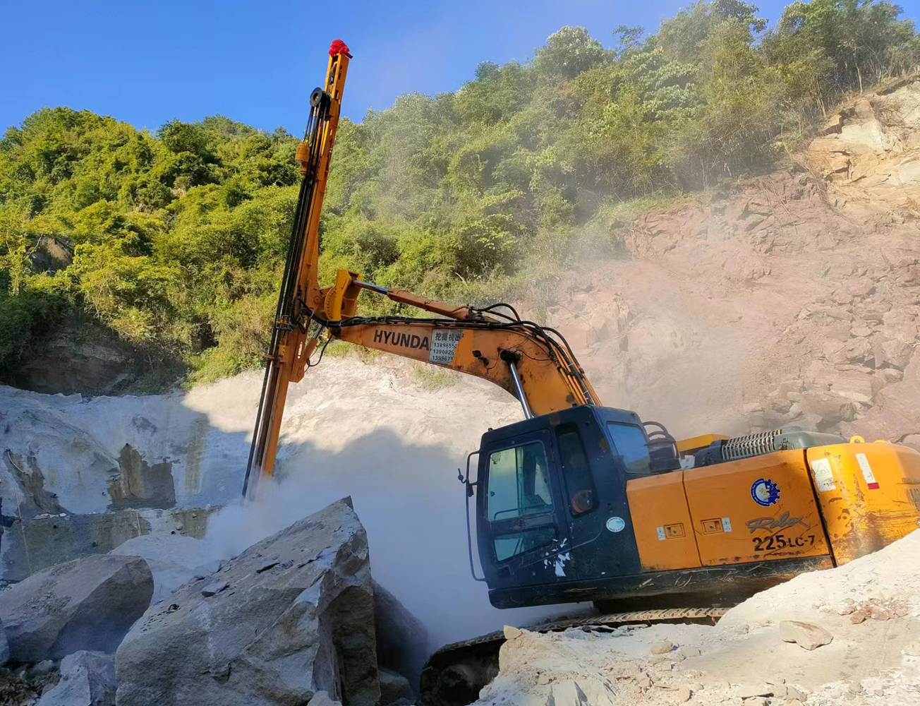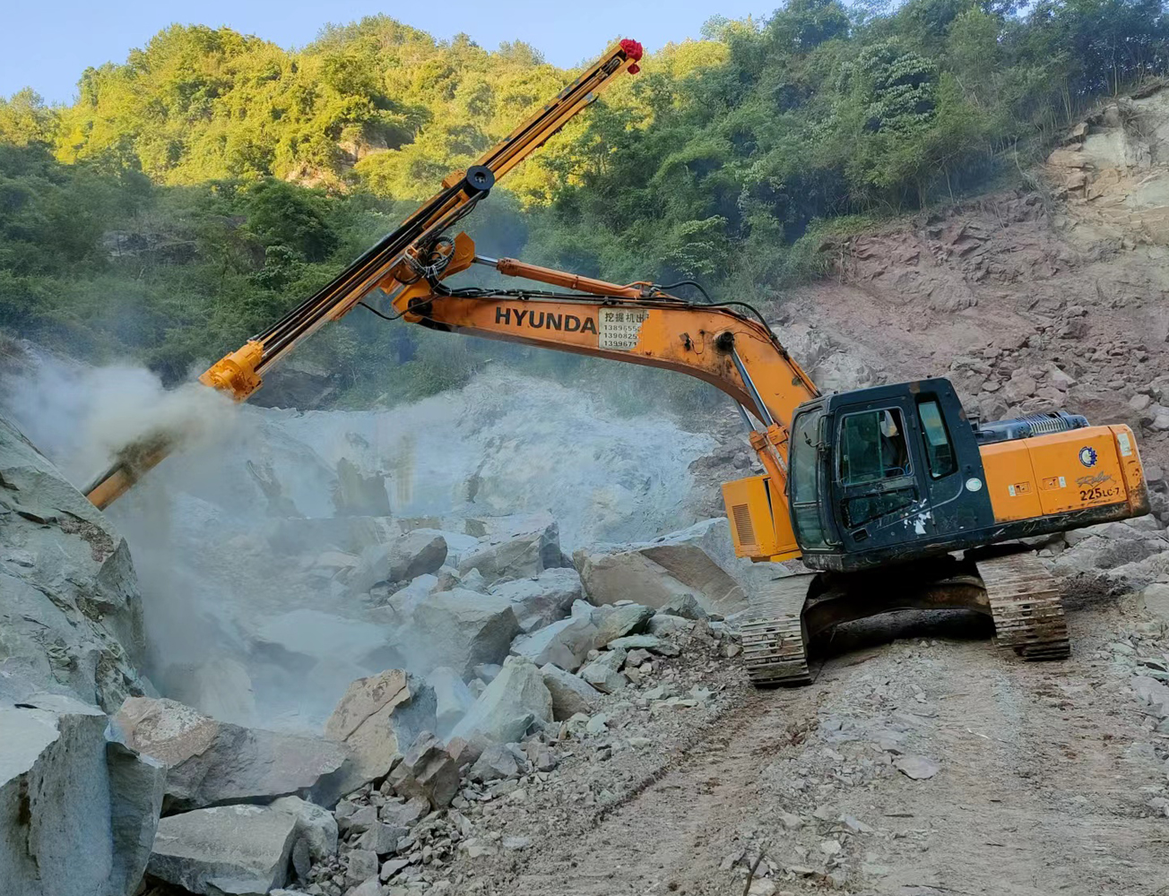 3、作業(yè)半徑擴大化 。因為挖掘機小臂不拆,它的作業(yè)半徑可以延長作業(yè)半徑2-3米,且仰角打孔、水平打孔、豎直打孔都可以實現(xiàn)。