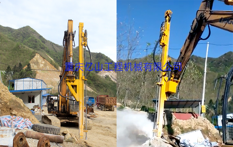 1、安裝拆卸方便。挖掘機小臂不用拆卸,不影響挖掘機自身功能,直接類似掛破碎錘一樣,管路系統都可以共用,真正實現一機五用并互換:挖土、破碎錘、切削鉆、鑿巖機、潛孔鉆。拆卸時間和換斗時差不多,約10-20分鐘。