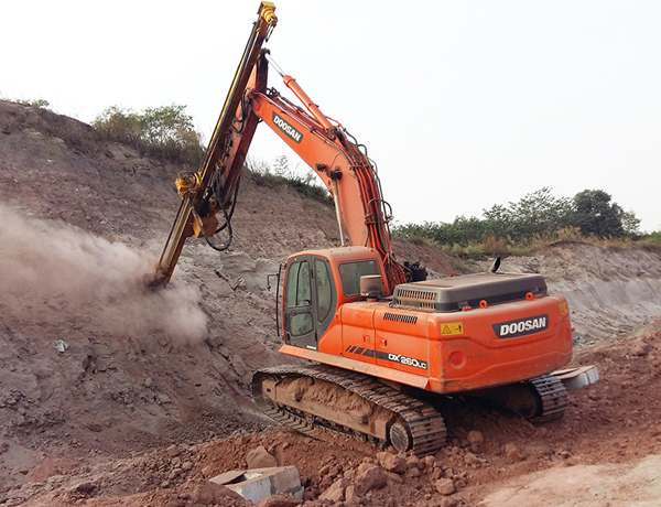 挖機(jī)改鉆機(jī)為您開啟了新的施工方法。挖斗+破碎錘+切削鉆機(jī)+鑿巖鉆機(jī)+潛孔鉆機(jī),一機(jī)多用,為您降低成本。無論您是從事采石業(yè)、采礦業(yè)、土建工程、鋼鐵工業(yè)、隧道工程或路橋工程,在許多傳統(tǒng)方法失效或成本高的地方,您都可以借助這靈活、耐用、噪音小且震動(dòng)低的特種機(jī)器。