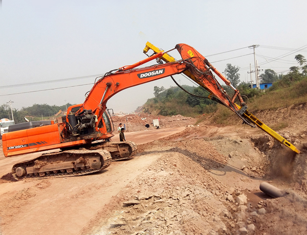 1、安裝拆卸方便。挖掘機(jī)小臂不用拆卸,不影響挖掘機(jī)自身功能,直接類似掛破碎錘一樣,管路系統(tǒng)都可以共用,真正實(shí)現(xiàn)一機(jī)五用并互換:挖土、破碎錘、切削鉆、鑿巖機(jī)、潛孔鉆。拆卸時(shí)間和換斗時(shí)差不多,約10-20分鐘。