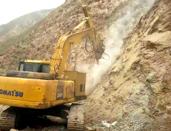 億山ES300挖改全液壓鑿巖機,廣泛適用于花崗巖、石灰石、大理石、火山石、青石、玄武巖等硬度較高的堅巖石的各種爆破前鉆孔作業(硬度F大于6級);可以借助挖機的操作靈活性用于錨桿鉆孔;也遠遠低于一體式鑿巖鉆機的采購價格。具操作簡易,設計人性化,感觀直接,實現挖掘機一機多用等特性。
